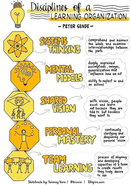 This is a useful summary of the work by Peter Senge on the Disciplines of a Learning Organisation.